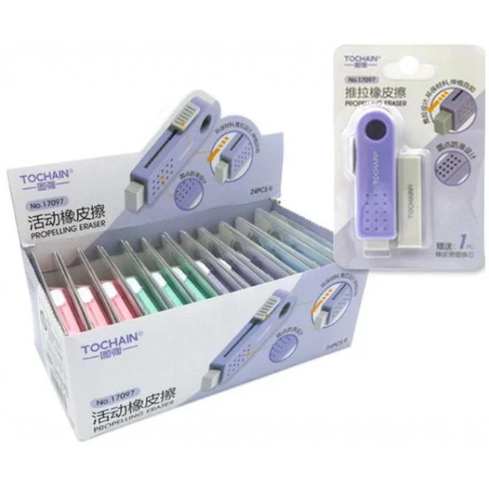 Ластик TOCHAIN DI-674/CP-90 "Выдвижной" 70*20 в футляре, со сменным блоком, цвета ассорти, на блистере №17097 322868