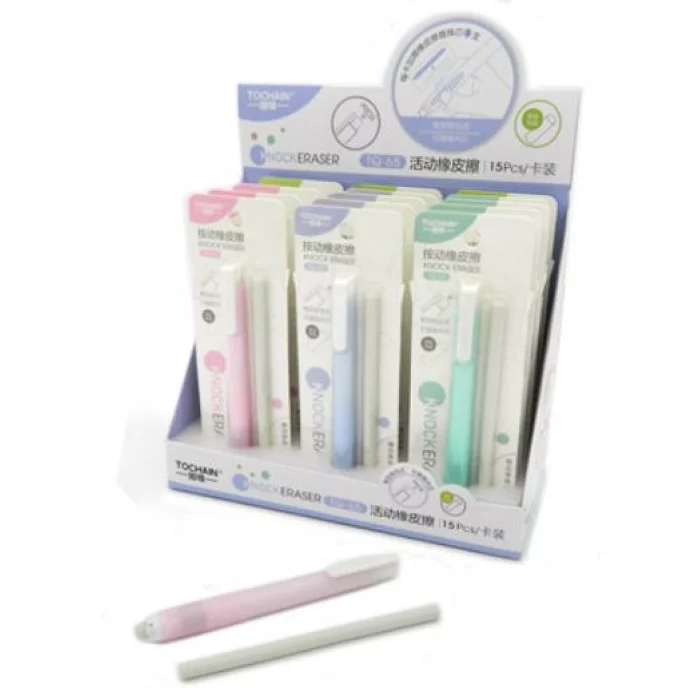 Ластик TOCHAIN DI-677/DE-420/CO-9 "Ручка" круглый наконечник 5мм, сменный ластик, цвета ассорти, на блистере TQ-65 321844