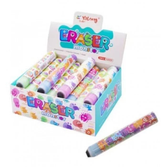 Ластик Yalong "Монстрики", синтетический каучук, ПВХ, цилиндрический, цвет ассорти, 105х15 мм