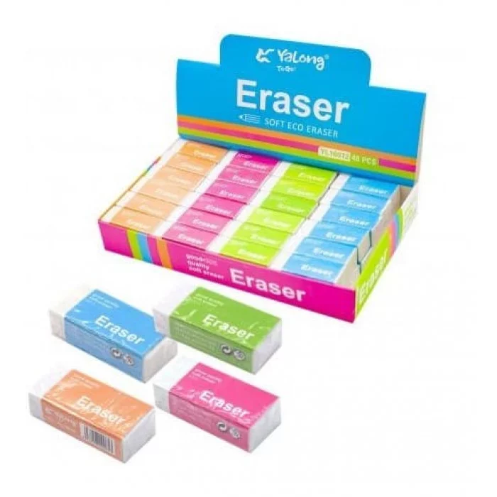 Ластик Yalong "Неоновое ассорти", синтетический каучук, прямоугольный, цвет ассорти, 40х17х12 мм