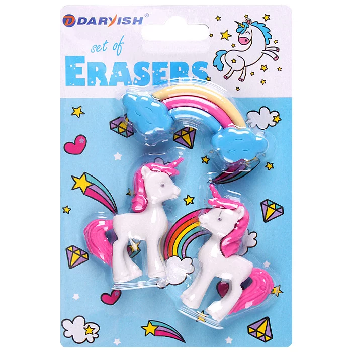 Набор ластиков "Darvish" 3шт/уп Единорожка ассорти DV-12467