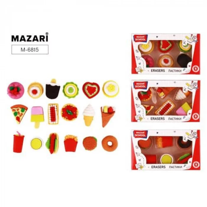 Набор ластиков M-6815 FOOD,термопластичная резина, фигурные,6 шт,3 дизайна,цветная коробка/картонный M-6815