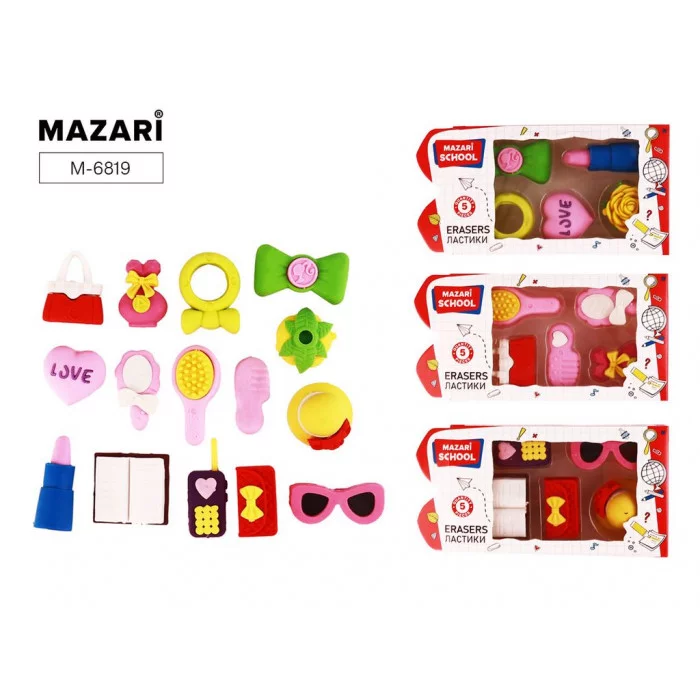 Набор ластиков M-6819 FASHION, термопластичная резина, фигурные, 6 шт, 3 дизайна, цветная коробка/картонн
