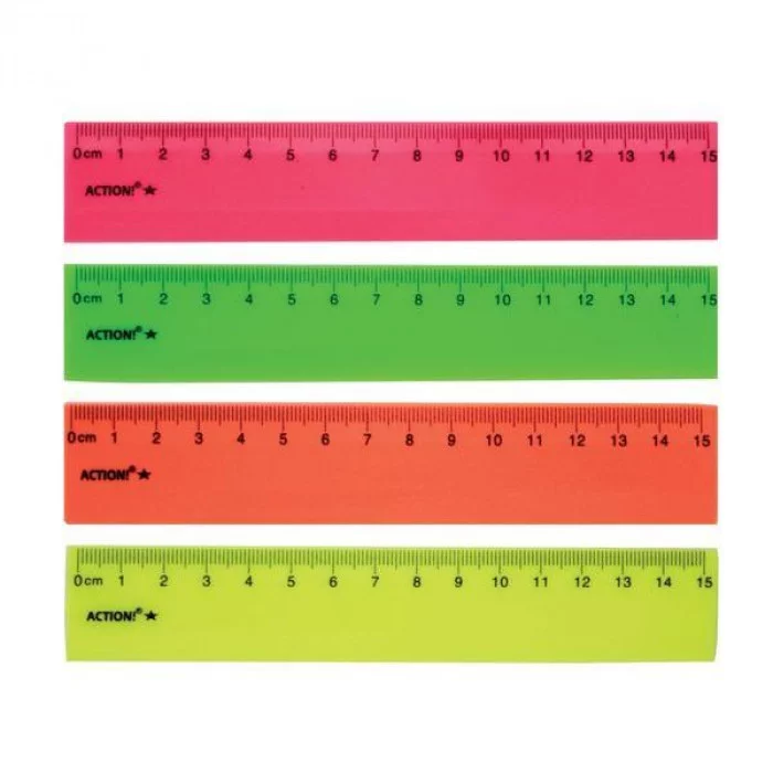Линейка 15см, флюоресцентная, пластиковая, 4цв, в инд.пакете с европодвесом ACTION! C21886