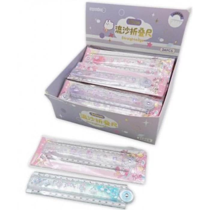Линейка 30см. пластиковая DE-972 Складная, прозрачная с плавающими блестками и рисунком, с трафаретами и волнистым краем, ассорти, в пакете SV-17829 330782