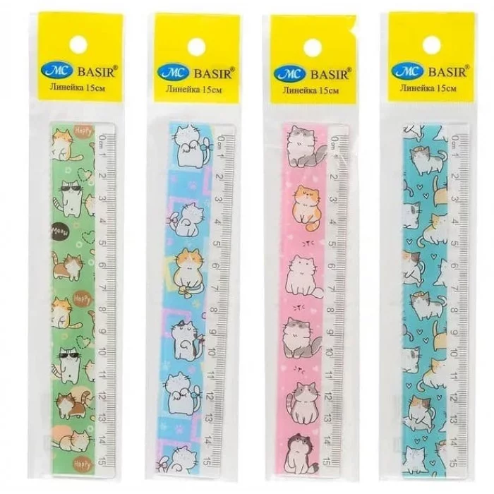 Линейка: "КОШКА"; пластиковая, с рисунком /ассорти/, 15 см. МС-6622