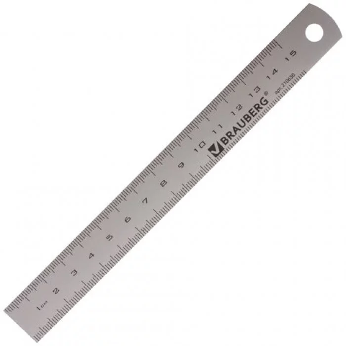 Линейка металлическая 15 см BRAUBERG, европодвес, 210630