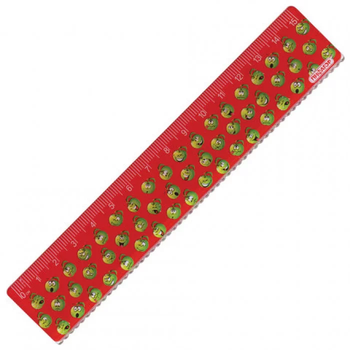 Линейка пластик 15 см ПИФАГОР "Веселые яблоки", цвет. печать, с волнистым краем, подвес, 210633