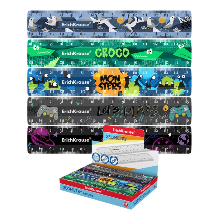 Линейка пластиковая ErichKrause®, 15см, ассорти из 5 дизайнов, (universal) 55981
