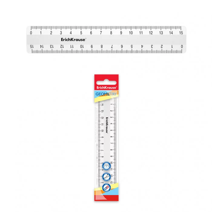 Линейка пластиковая ErichKrause® Classic, 15см, белый, во флоупаке 53871