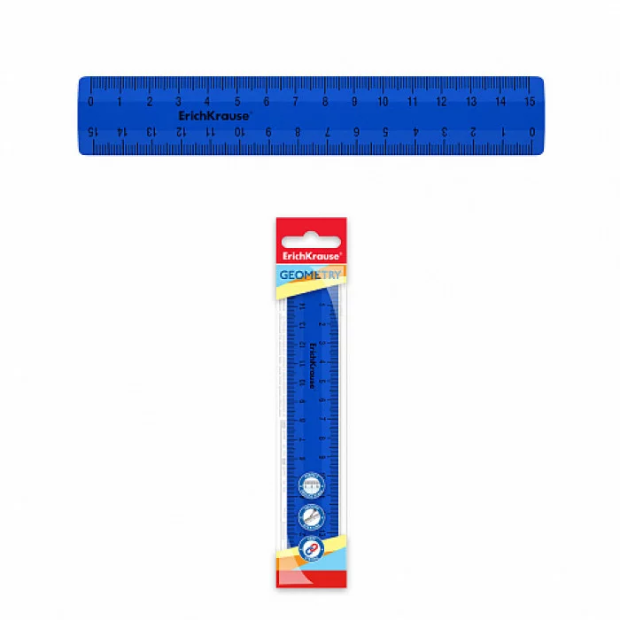 Линейка пластиковая ErichKrause® Classic, 15см, синий, во флоупаке 53874