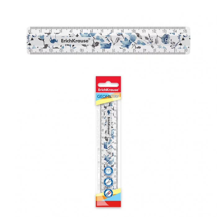 Прозрачная линейка из высококачественного пластика. Двухсторонняя шкала и рисунок нанесены на термопленку. Длина разметки – 15см. Можно подобрать в комплект другие канцелярские товары из этой же коллекции.