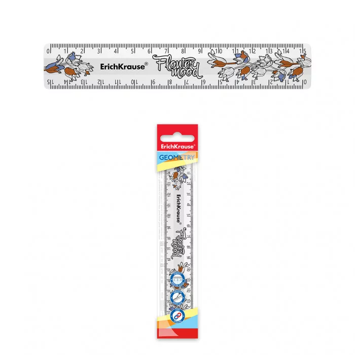 Линейка пластиковая ErichKrause® Tulips, 15см, во флоупаке (white) 55466