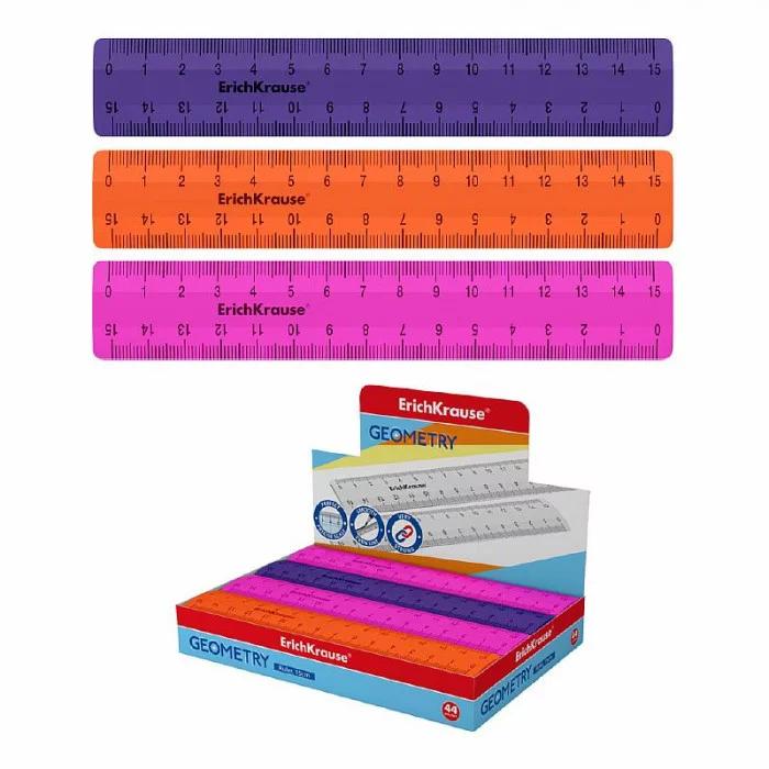 Непрозрачная линейка из высококачественного пластика. Четкая печать двухсторонней шкалы. Длина разметки – 15см.
