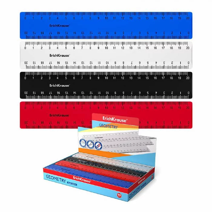 Непрозрачная линейка из высококачественного пластика. Четкая печать двухсторонней шкалы. Длина разметки – 20см.