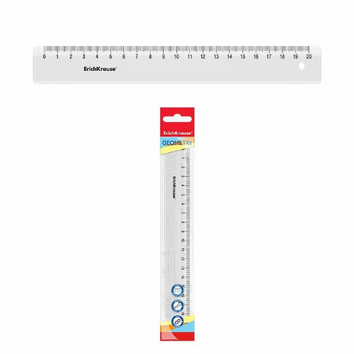 Линейка пластиковая ErichKrause Clear, 20см, прозрачный 49498