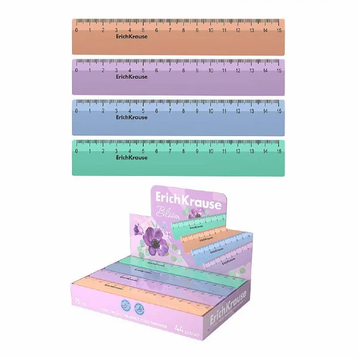 Линейка пластиковая ErichKrause Pastel Bloom, 15см, ассорти 61762