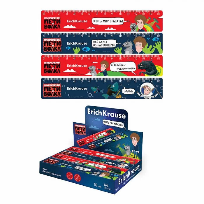 Линейка пластиковая ErichKrause Приключения Пети и Волка, 15см, ассорти 61768