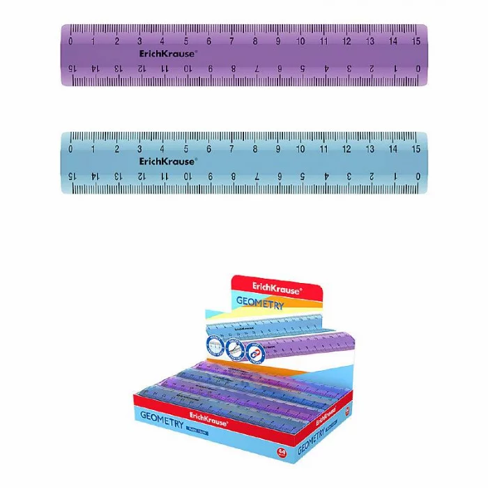 Линейка пластиковая ErichKrause Standard, 15см, ассорти 52981