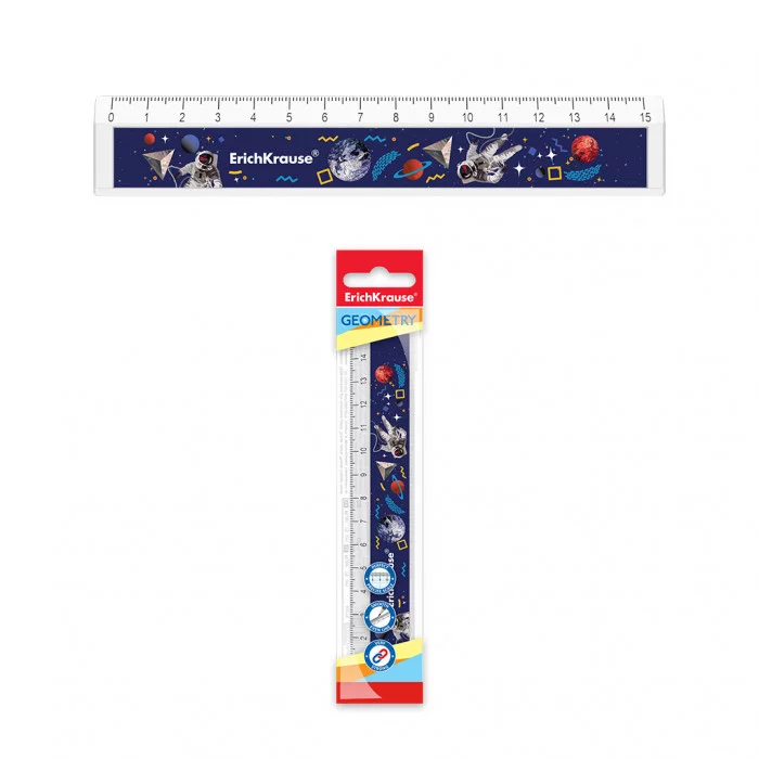 Линейка с выемкой пластиковая ErichKrause® Cosmonaut, 15см, во флоупаке 55429