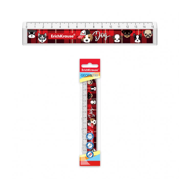 Линейка с выемкой пластиковая ErichKrause® Cute Dog, 15см, во флоупаке 55486