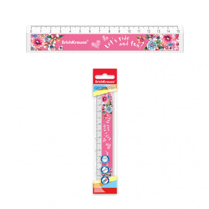 Линейка с выемкой пластиковая ErichKrause® Flower Scooter, 15см, во флоупаке 55484