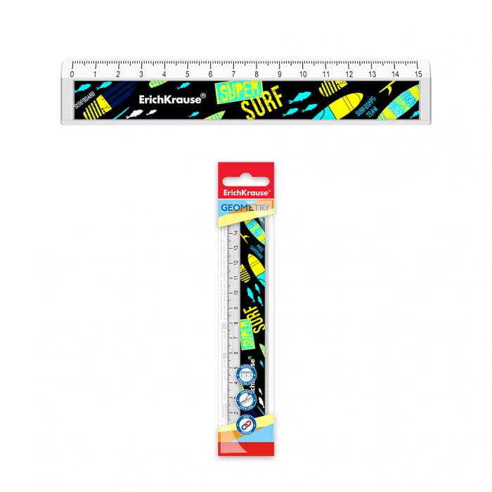 Линейка с выемкой пластиковая ErichKrause® Surf Team, 15см, во флоупаке 55430