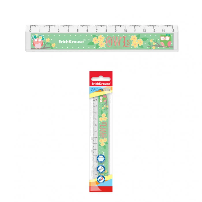 Линейка с выемкой пластиковая ErichKrause Flower Owl 15см 57833