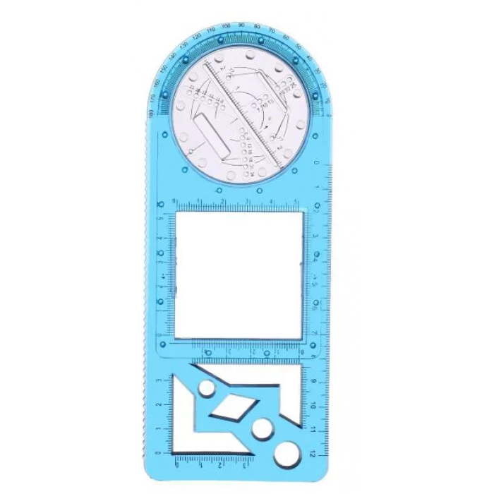 Линейка-трафарет, пластик, с транспортиром, для черчения фигур, цвет ассорти 9630196