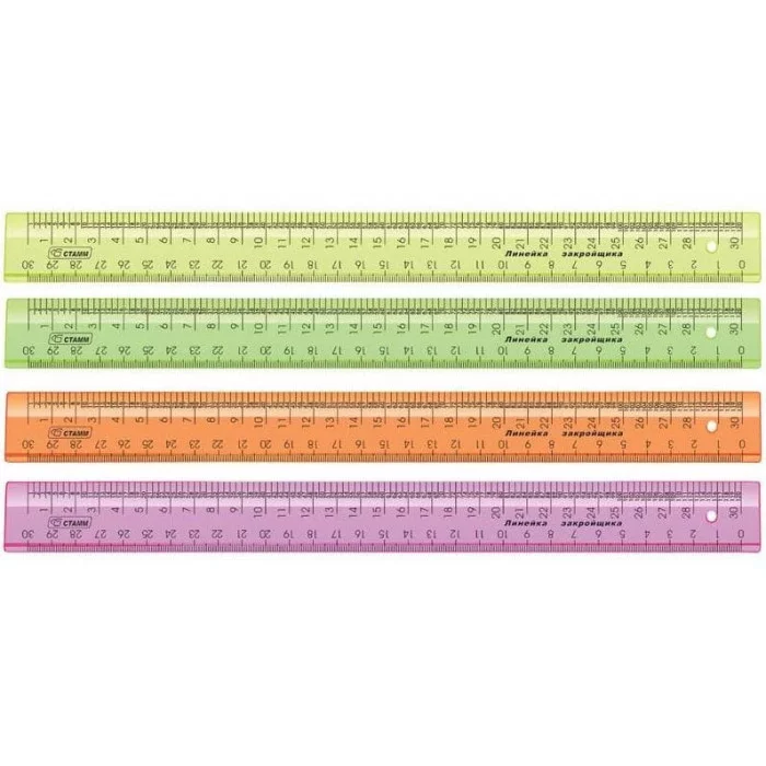Линейка закройщика 30см Стамм, флуоресцентная прозрачная, 4цв. Стамм 001534