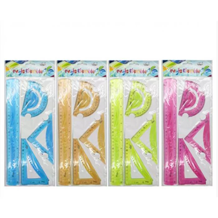 Линейки набор CK-82 неломающиеся (30см-линейка 2 шкалы, 9см, 13см-угольник, транспортир), цвета ассорти 319678