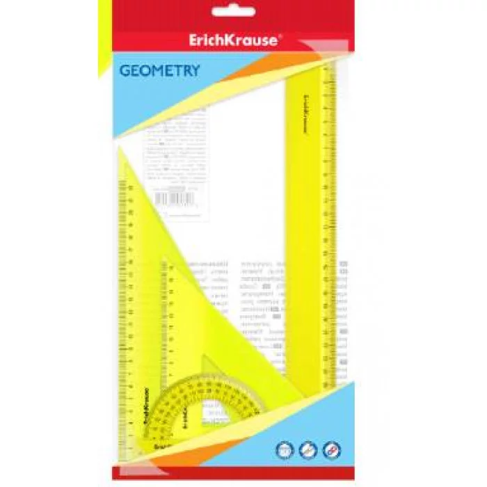 Набор геометрический большой пластиковый ErichKrause Neon, (линейка, 2 угольника, транспортир), желтый 49572
