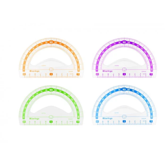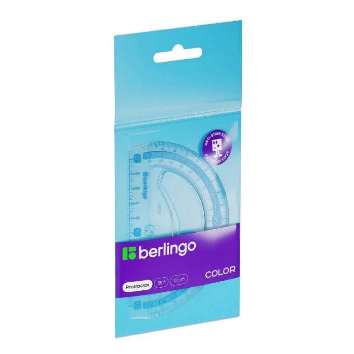 Транспортир 10см, 180° Berlingo "Color", пластиковый, ассорти, европодвес 292846