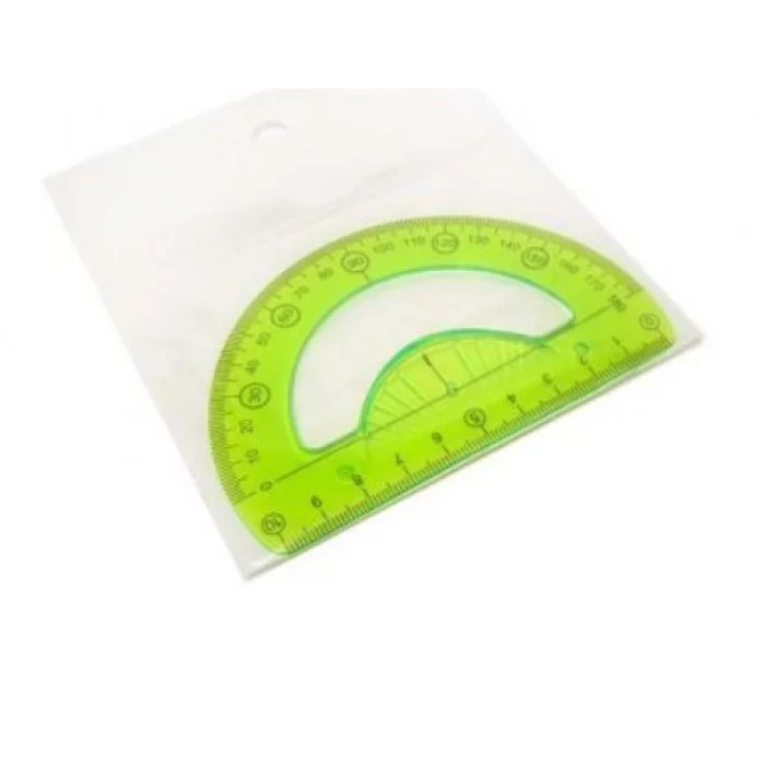 Неоновый прозрачный транспортир из прочного пластика, неломающийся. Имеет контрастную миллиметровую шкалу. Отверстие для карандаша позволяет точно находить центр и вычерчивать окружность 360°.