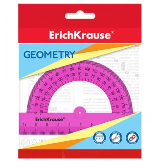 Транспортир пластиковый ErichKrause Neon Solid 180°/10см розовый 57905