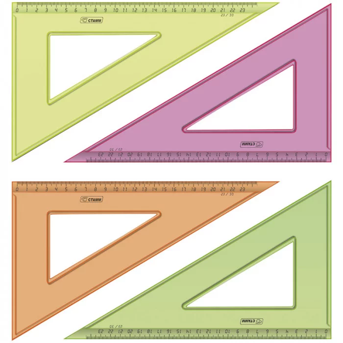Треугольник 30°, 23см Стамм, прозрачный флуоресцентный, 4цв. Стамм 028402