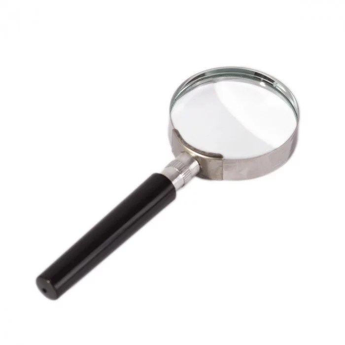 Лупа 50 мм ALINGAR, металл. ободок, держатель пластик, картонная уп. AL8944