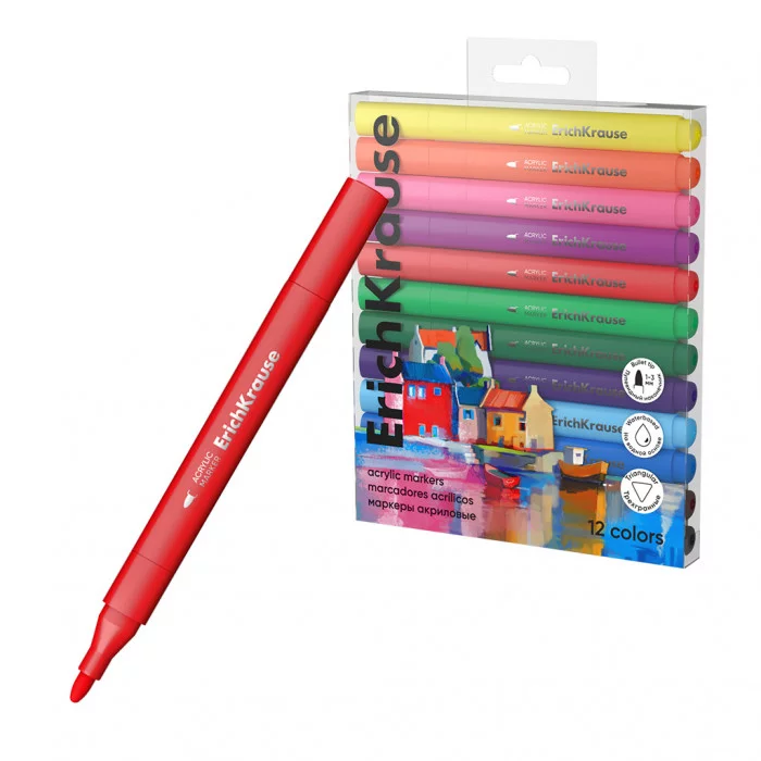 Маркеры акриловые ErichKrause Art Spirit c пулевидным наконечником 12 цветов 61839