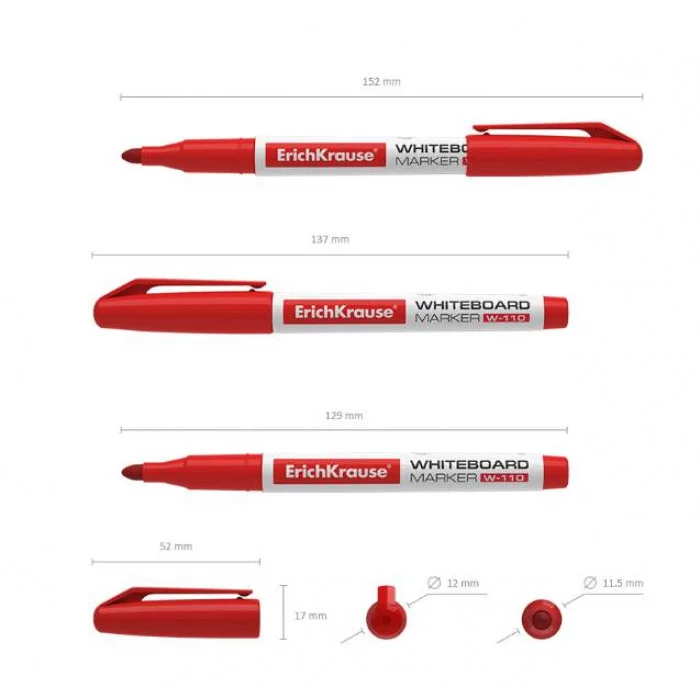 Маркер для досок ErichKrause W-110, цвет чернил красный 56917