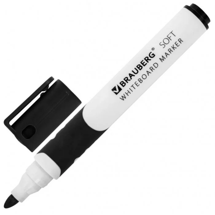 Высококачественный маркер BRAUBERG "SOFT" для белой доски. Предназначен для письма на досках с магнитно-маркерной поверхностью.