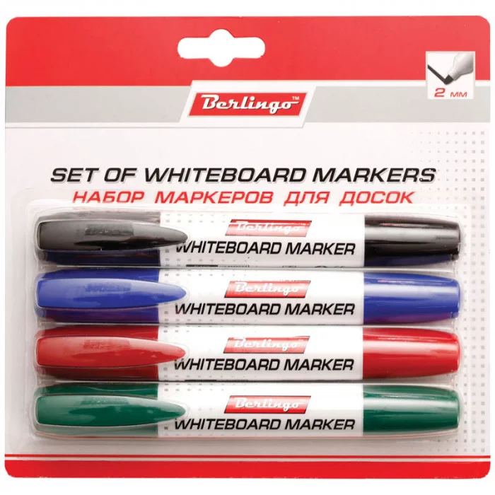 Набор маркеров для белых досок Berlingo 4цв., пулевидный, 2мм, блистер BERLINGO_ 163732