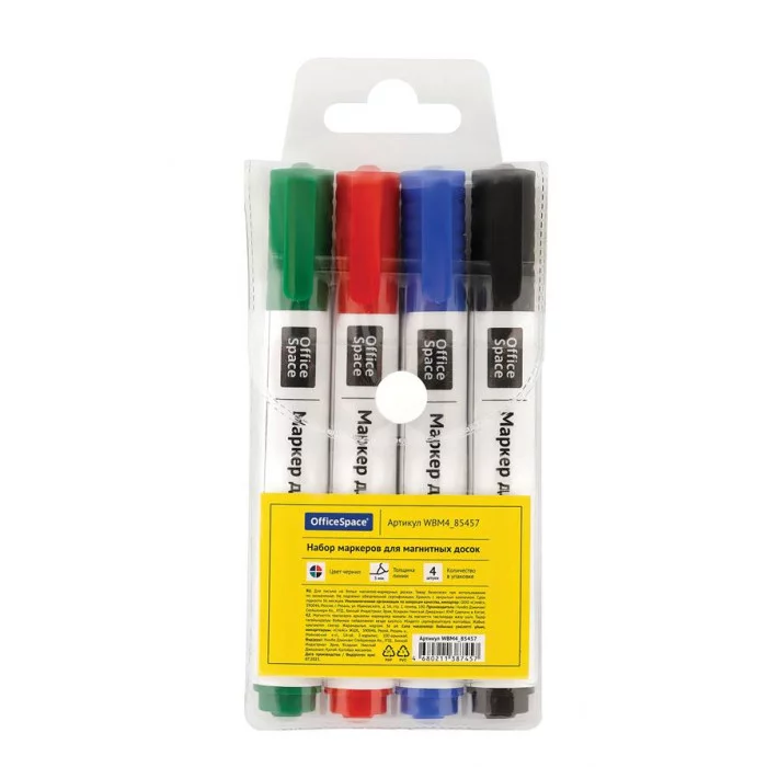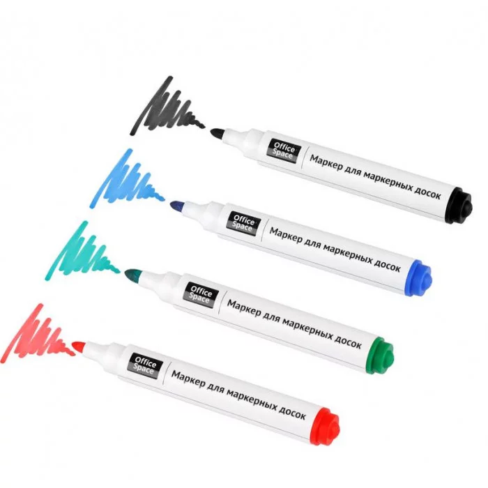 Набор маркеров OfficeSpace предназначен для письма на магнитно-маркерных досках. Закругленный пишущий узел. Толщина линии: 3 мм. Маркеры упакованы в ПВХ чехол. Чернила на спиртовой основе легко стираются сухой губкой для досок. Плотный колпачок с клипом надёжно предотвращает высыхание. Хранить с закрытым колпачком.
