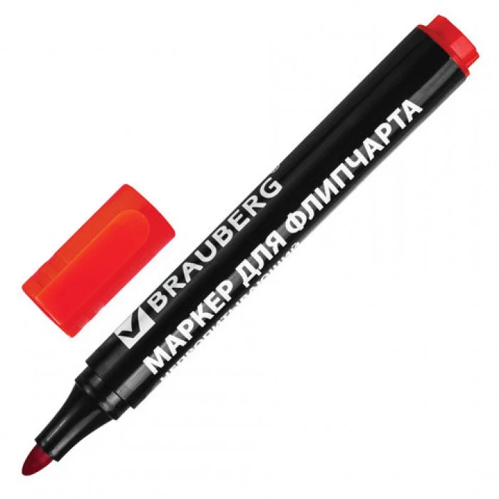 Маркер для флипчарта BRAUBERG, НЕПРОПИТЫВАЮЩИЙ, КРАСНЫЙ, круглый наконечник, 2, 5 мм, 151255
