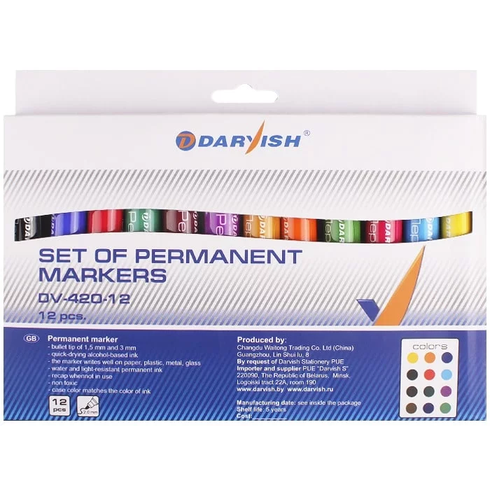 Маркер перманентный 1шт цвет ассорти без возможности выбора "Darvish" (2 мм) DV-420-12