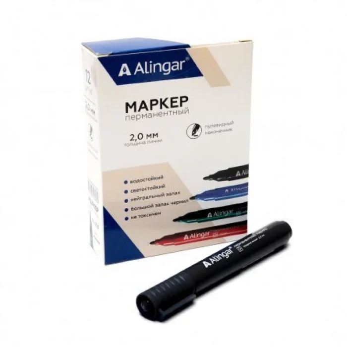 Маркер перманентный, черный, Alingar, пулевидный, 2 мм AL5531