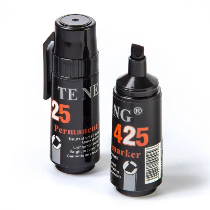 Перманентный маркер позволяет писать практически на любых поверхностях: стекле, пленках, пластмассе. Цвет и насыщенность линий не выцветает и не тускнеет со временем. Маркер устойчив к стиранию, воде и атмосферным воздействиям. Цвет чернил: черный
