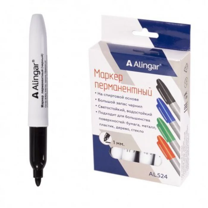Маркер перманентный, черный, Alingar, утолщенный пулевидный, 3 мм AL524