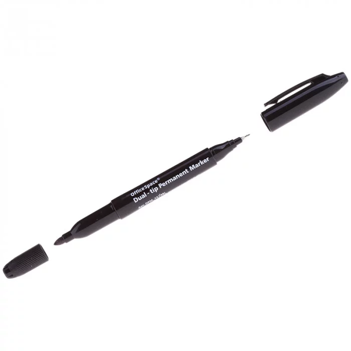 Маркер перманентный двухсторонний OfficeSpace черный, пулевидный, 0,8/2,2мм Спейс 178876