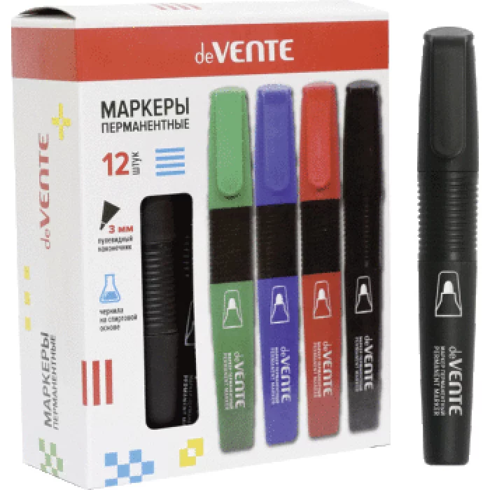 Маркер перманентный "deVENTE" круглый корпус с каучуковыми вставками, пулевидный наконечник, ширина линии 3 мм, черный.