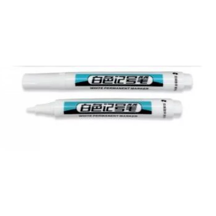 Перманентный маркер предназначен для маркировки большинства гладких поверхностей: резина, дерево, металл, пластик, ПВХ, плитка, стекло, керамика, картон, кожа. Конический пишущий узел создает линии толщиной 3 мм. Цвет чернил - белый.